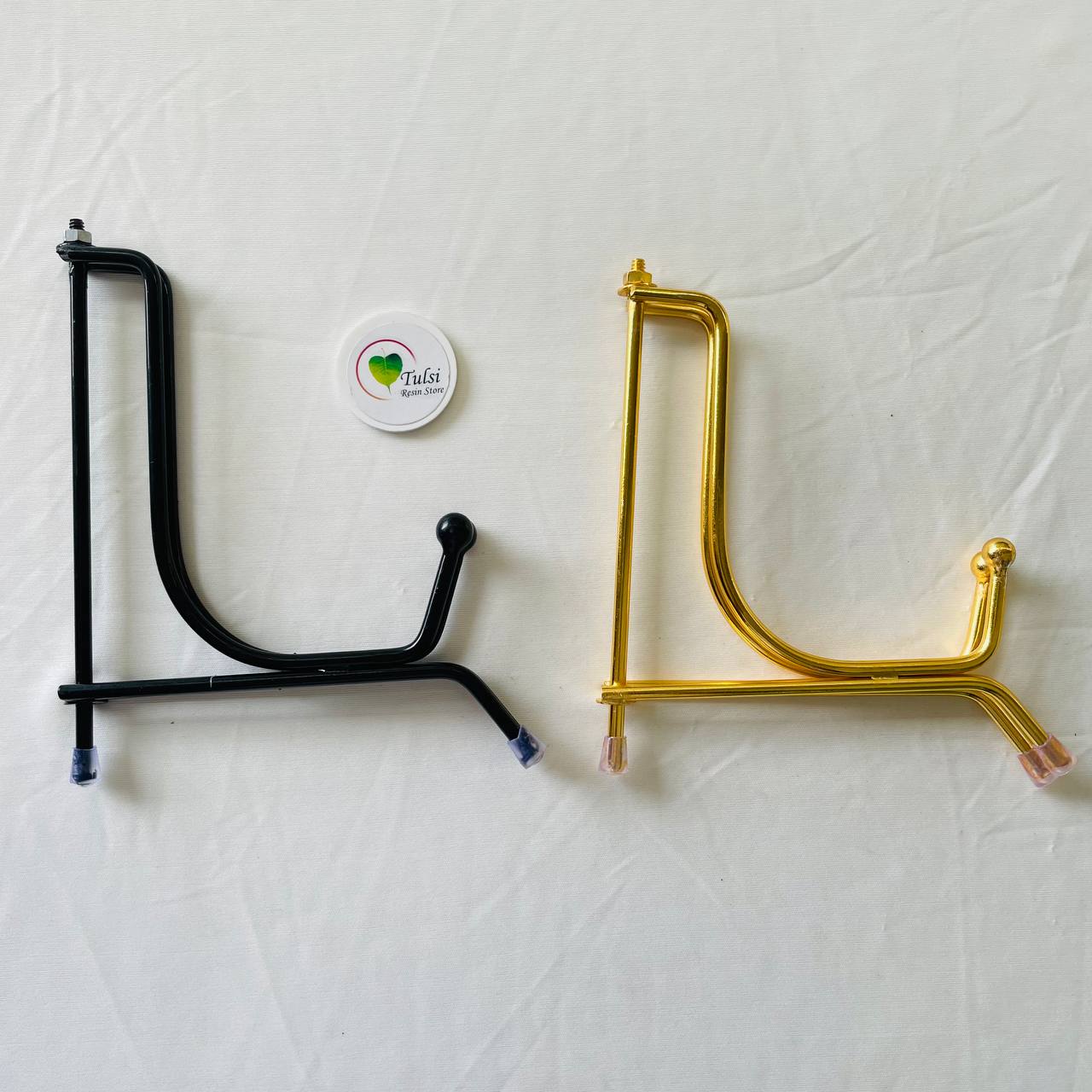 Golden and Black powder coated on iron with rubber legs and 180 degree openable